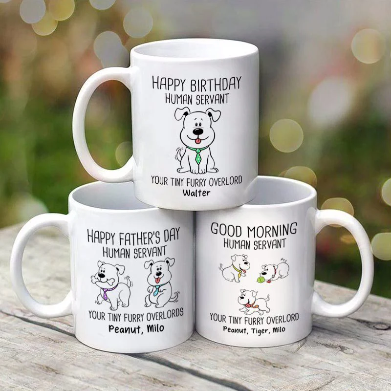 Happy Father‘s Day Human Servant Wagging Tail Dogs Personalized Mug